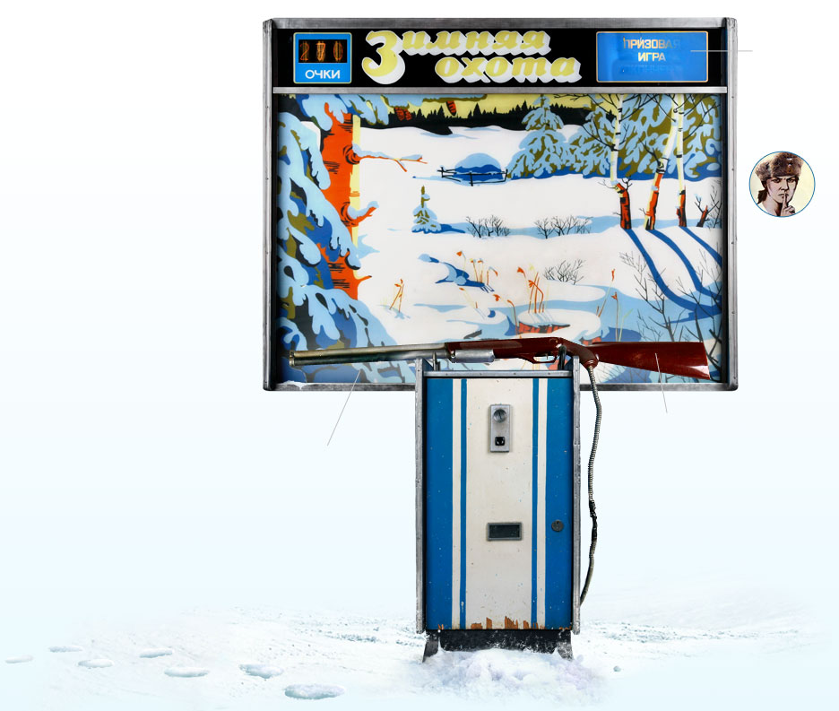 Игрок должен стрелять из ружья в бегущих зверей. За 1 точный выстрел засчитывается 10 очков, а вся игра длится 2 минуты.
